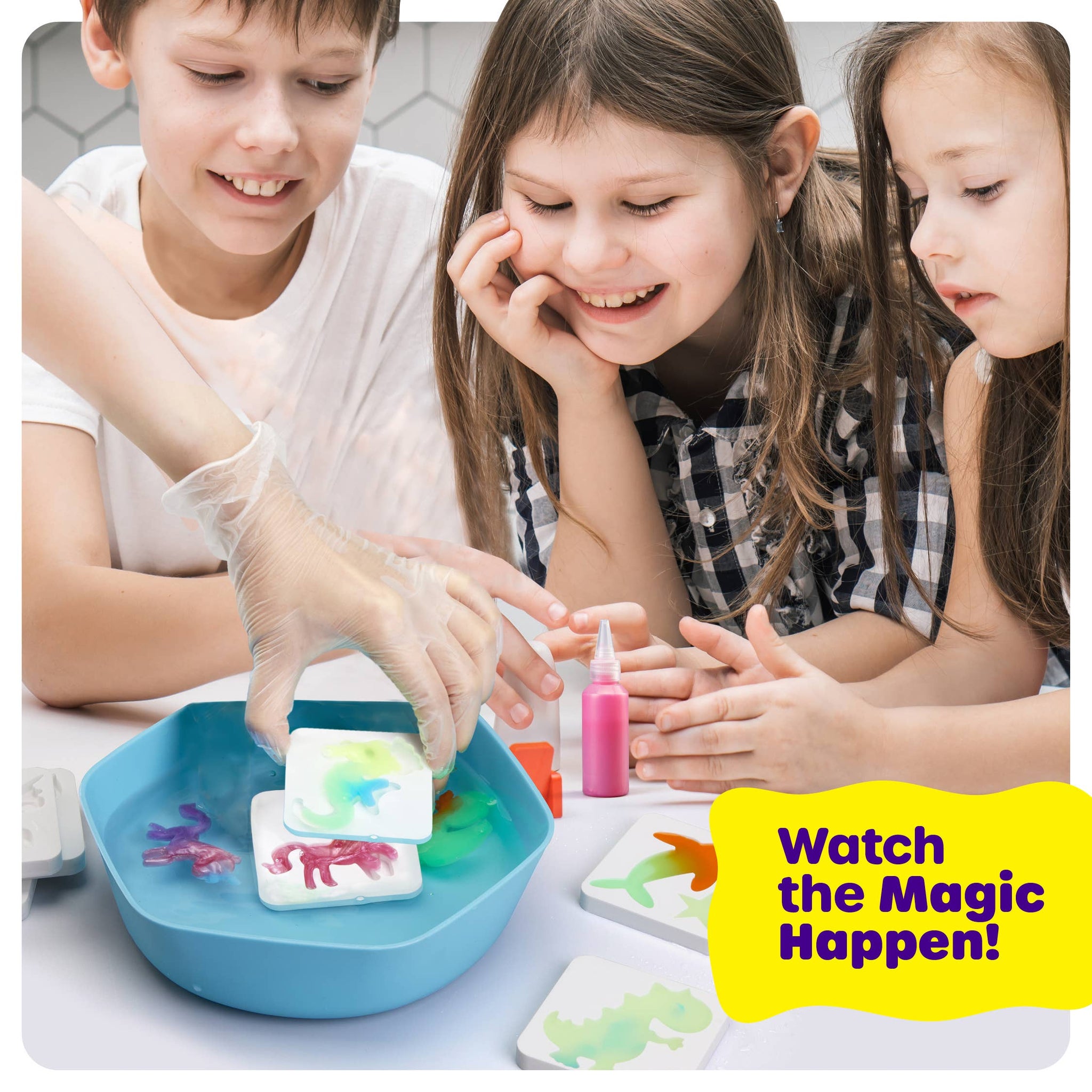 CREATE, DIP, AND PLAY: Add the colored gels into the mold, dip it in the special water solution, and watch them come to life! Then, store your water pets in the included ‘aquarium’ jar for hours of fun.