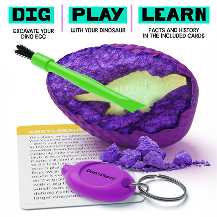 UNLEASH THE PALEONTOLOGIST WITHIN: Dive into a thrilling excavation adventure with the Dan&Darci Dig a Dozen Glow in the Dark Dino Eggs! Contains 12 dino eggs, each harboring a unique glow-in-the-dark dinosaur for an unforgettable digging experience.