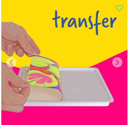 Layer paint, smear, drag, and 'transfer' it onto the paper. Let it dry and voila! Beautiful marble painted art! Follow the simple illustrated instruction guide and create fantastic art.